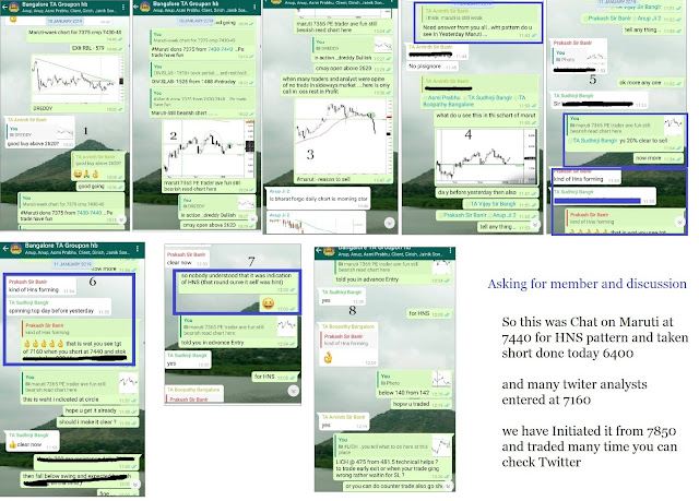 Eg We started Maruti sell only at 7850 when other Analysts are now selling at 7160 on HNS pattern breakdown which we already identified just 10 days back ..means Low SL in case of trade goes against trade from extreme levels ..today Done 6400 Tgt done